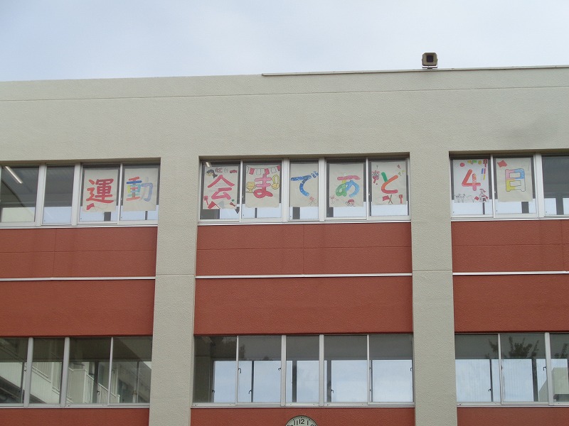 今日は、日中も過ごしやすい気温でした。3・4年生が黒のTシャツを着て、表現運動の仕上げをしていました。細かいところまで気をつけて踊っていたのが、かっこよかったです。当日が楽しみですね。校舎の中央廊下には、運動会まであと○日とカウントダウン掲示がされています。4年生が作成して、毎日掲示を変えてくれているそうです。気持ちが引き締まります。