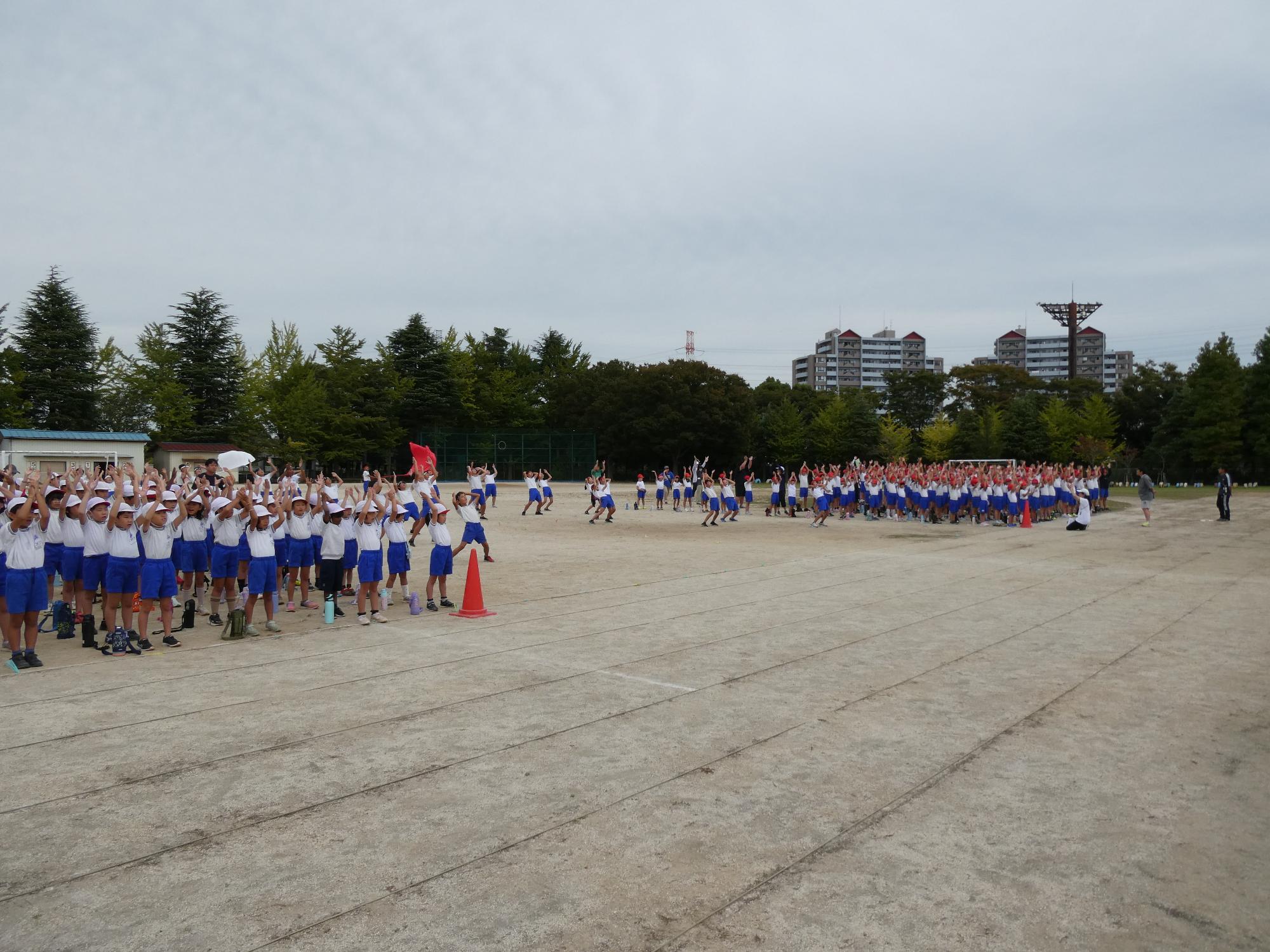 大きな声でお互いを称え合い、「ゴーゴーゴー」の歌を校庭いっぱいに響かせました。