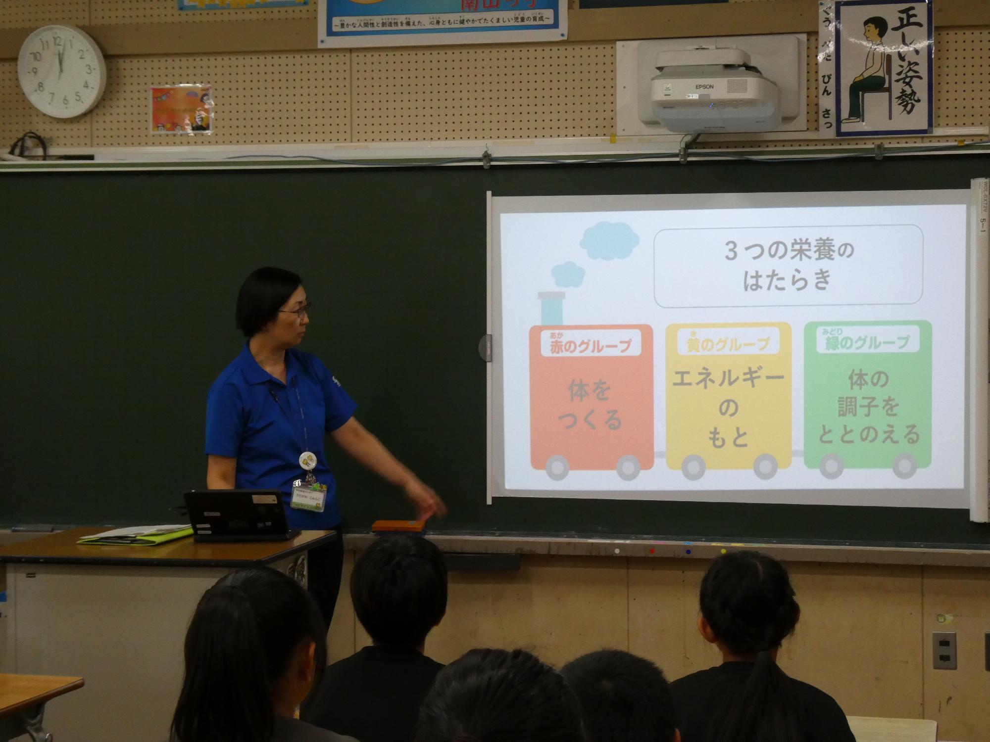 お昼前に給食指導として、給食センターの宇田川先生がご指導に来てくださいました。