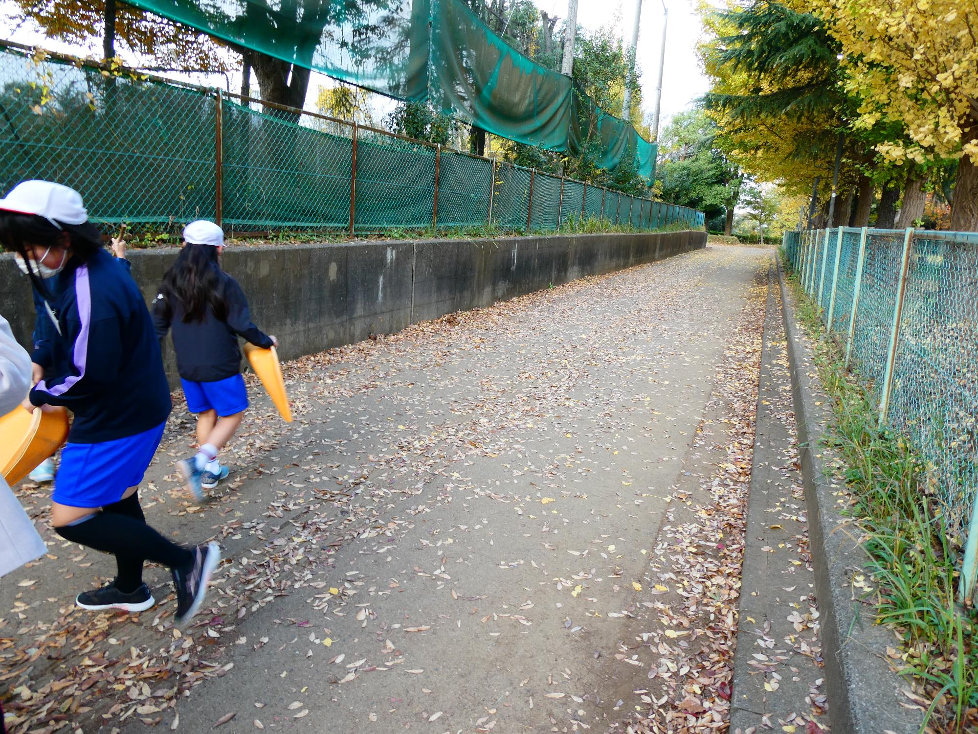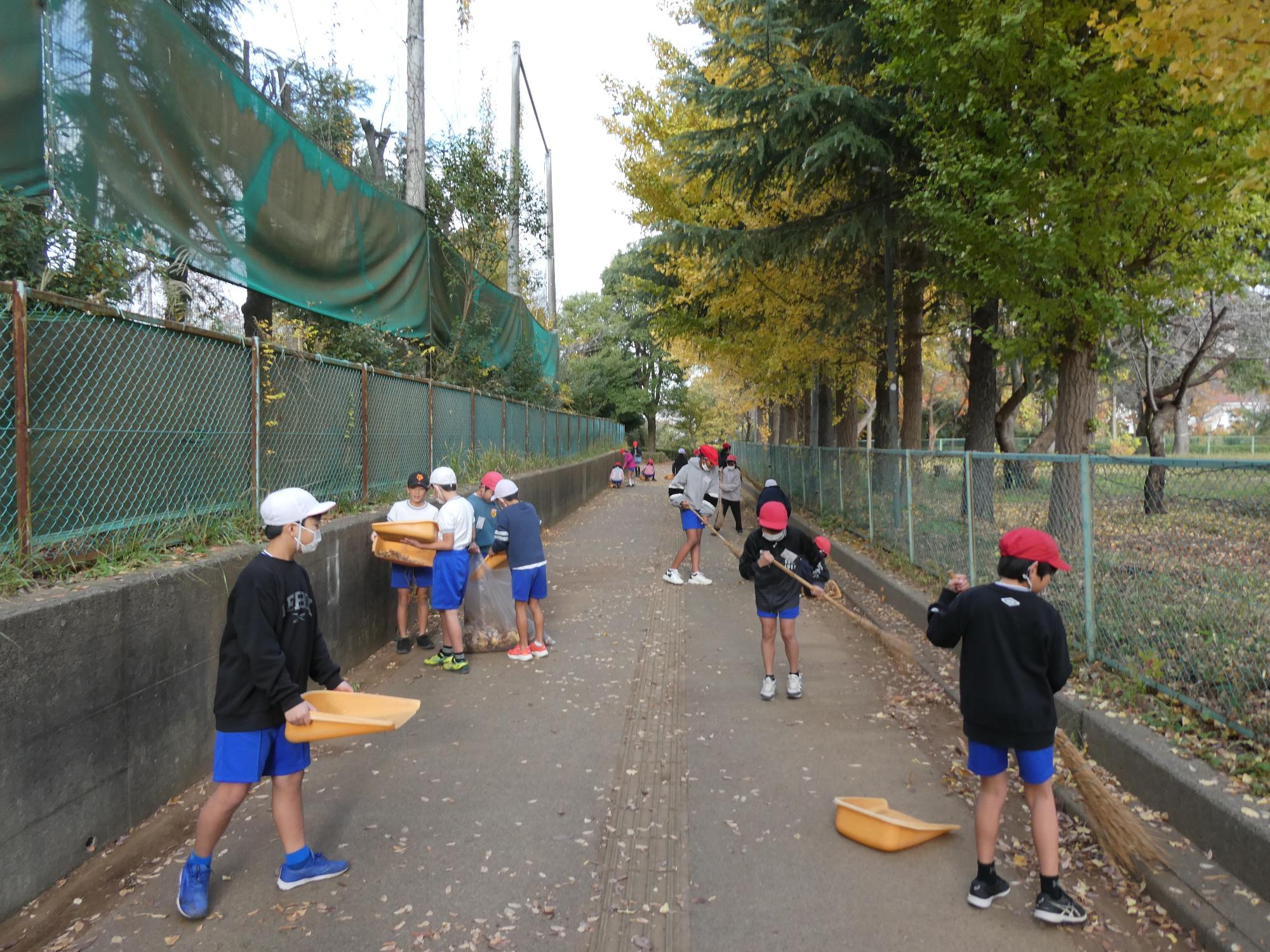 現在、各学級で順番に落ち葉掃きを行っています。今日は5年生が校門前の緑道を清掃しました。通路を覆うような量の落ち葉が広がっていましたが、短い時間の中でも一生懸命きれいにしてくれました。また、すれ違った地域の方にも、気持ちのよい挨拶をしていたもの素敵でした。