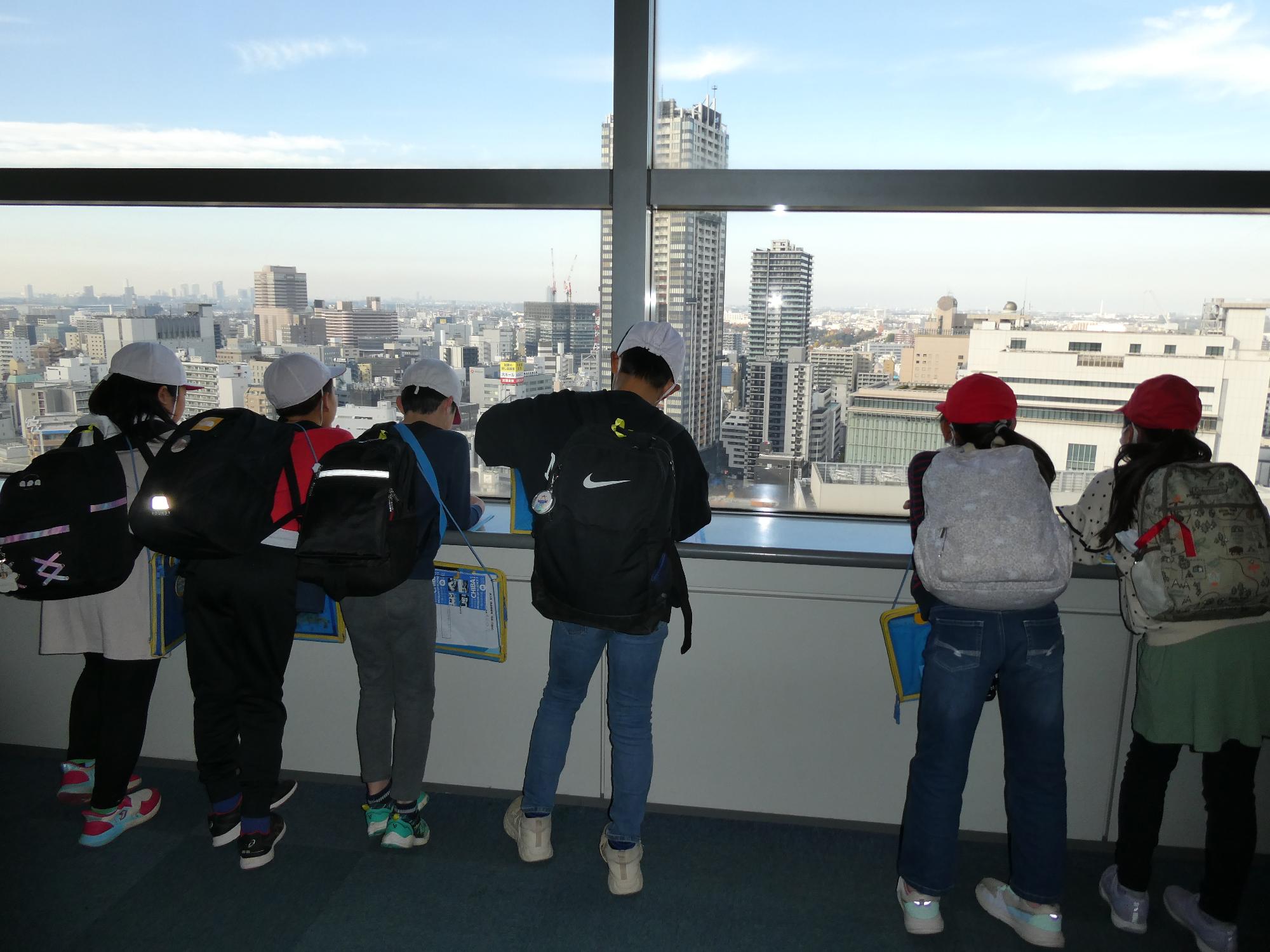 また、千葉県庁では、19階の展望台から広がる景色に大きな驚きの声があがりました。目の前に広がる街並みをじっくり眺めながら、それぞれが気に入った建物や乗り物を熱心にデッサンする姿も印象的でした。今回の校外学習を通して、科学への興味や地域への理解をさらに深めることができました。
