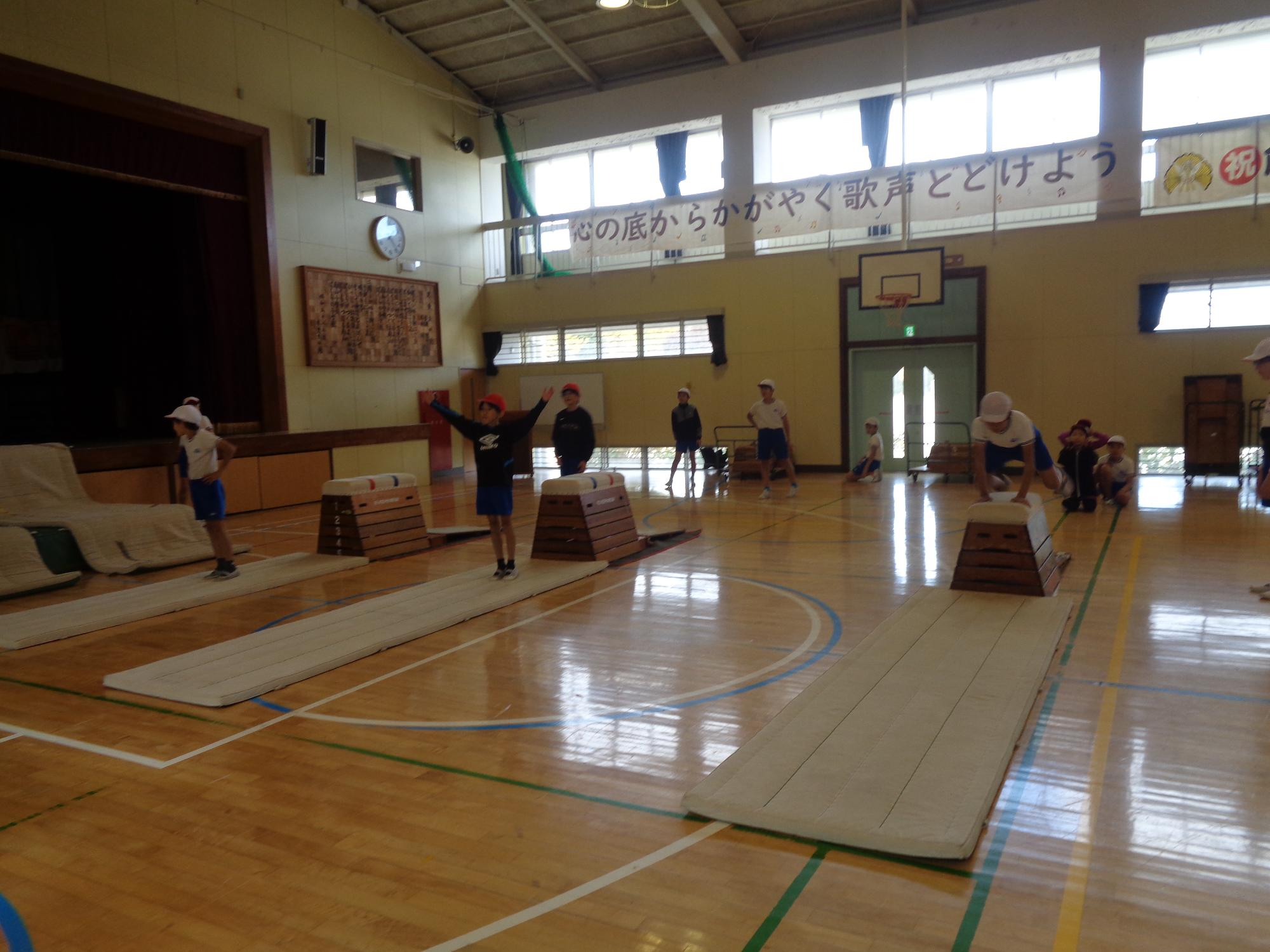 先週金曜日(7日)の学習参観では、跳び箱運動の発表会を行いました。授業で実際に取り組んできた補教運動の様子、上手くいかない練習の過程、磨いてきた技や新しく体得した技を軽やかにこなす様子などを、音楽にのせて紹介・披露しました。「少し休もう」と担任が声をかけなければ、何度でも跳び箱に向かう子供たちの意欲は、本当に素晴らしいものでした。思うように跳べない時間も、誰もが逃げることなく、前に進もうと頑張りました。発表直前に新たなことができるようになった子もいました。やはり、お家の方に観てもらう学習参観は、子供たちに大きなエネルギーを与えてくれるものですね。ご参観ありがとうございました。