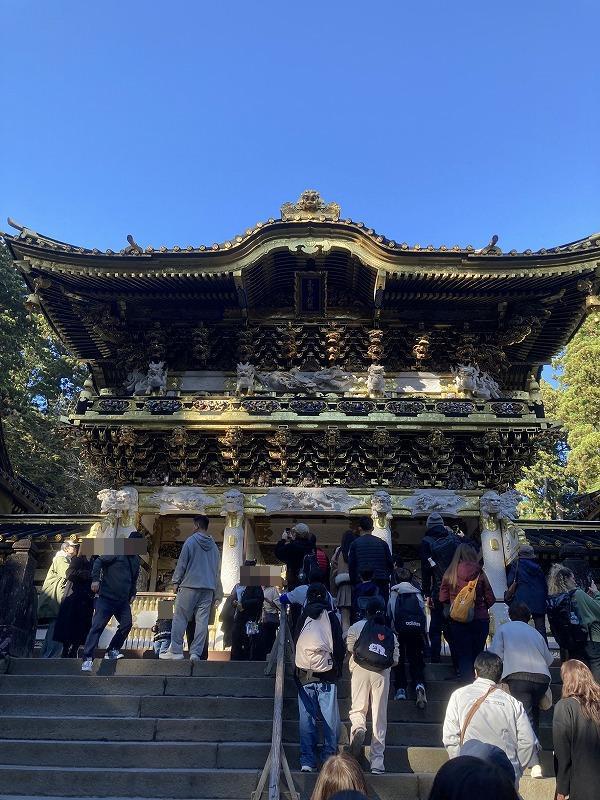 日光に到着してからも晴天に恵まれ、青空に紅葉がとても映えていました。日光彫り、昼食、日光東照宮、旅館での様子となります。