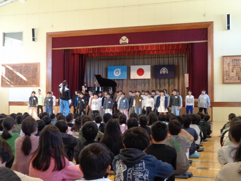 今日の昼休みに白井市小中学校音楽発表会の壮行会が行われました。6年生が学校代表として、明日、市文化ホールで行われる「音楽発表会」に参加するので、1~5年生に合唱を披露してくれました。6月の南山コンサートでも歌った「大切なもの」ですが、数ヶ月経って改めて聴くと、6年生一人一人の成長ぶりを感じると共に、より6年生の学年の団結力が伝わりました。5年生の代表児童からは「6年生のように歌いたい」という言葉がありました。6年生は南山小学校みんなの憧れです。明日は自信をもって発表してきてください。そしてきれいなハーモニーをホールいっぱいに響かせてきてくださいね。
