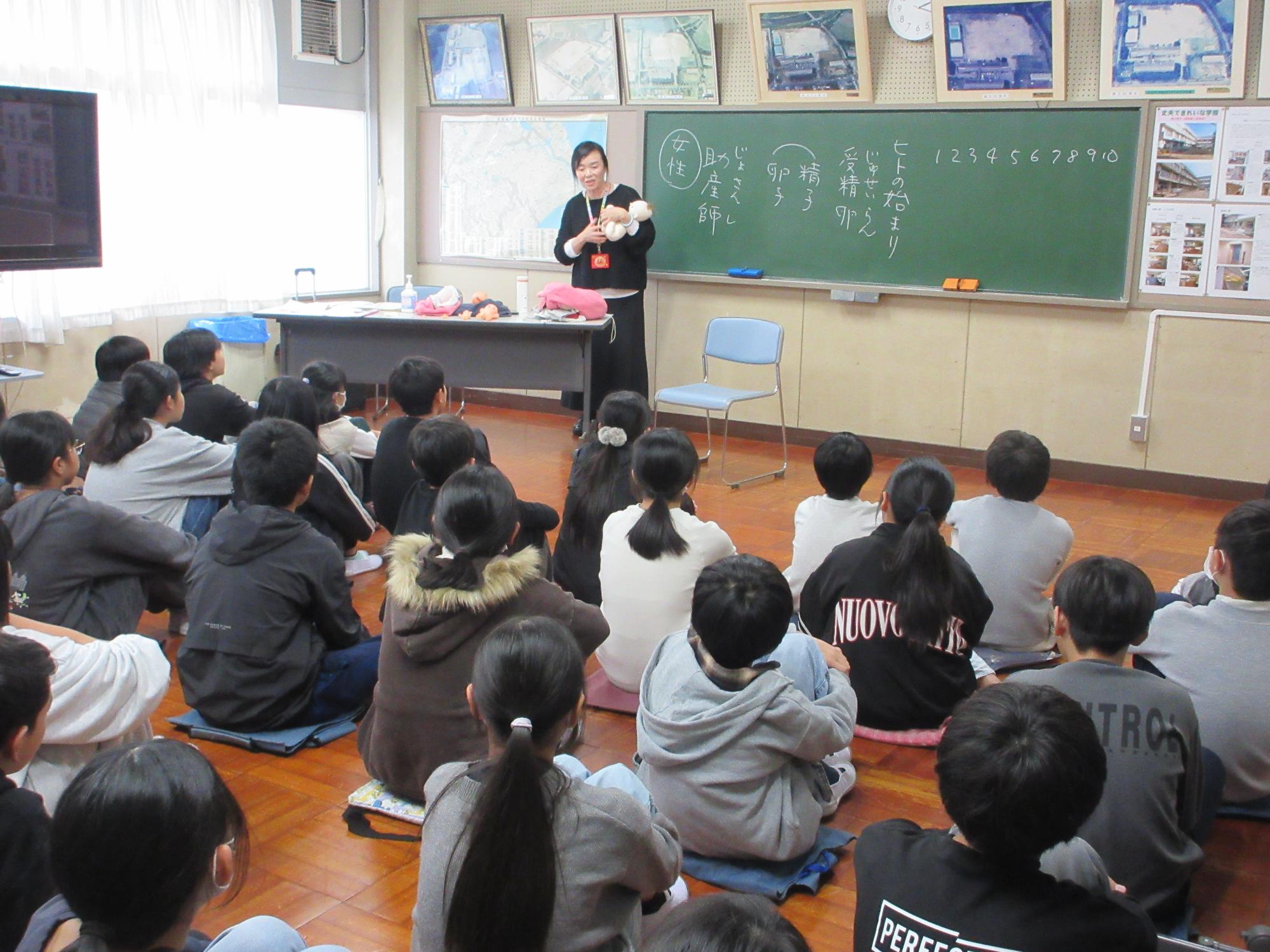 12月2日に助産師の戸村恵理先生をお招きし、命のはじまりから出産までの母胎の変化や、妊娠の時期から出産後も周囲のサポートがあってみんなが大きくなった事を話していただきました。