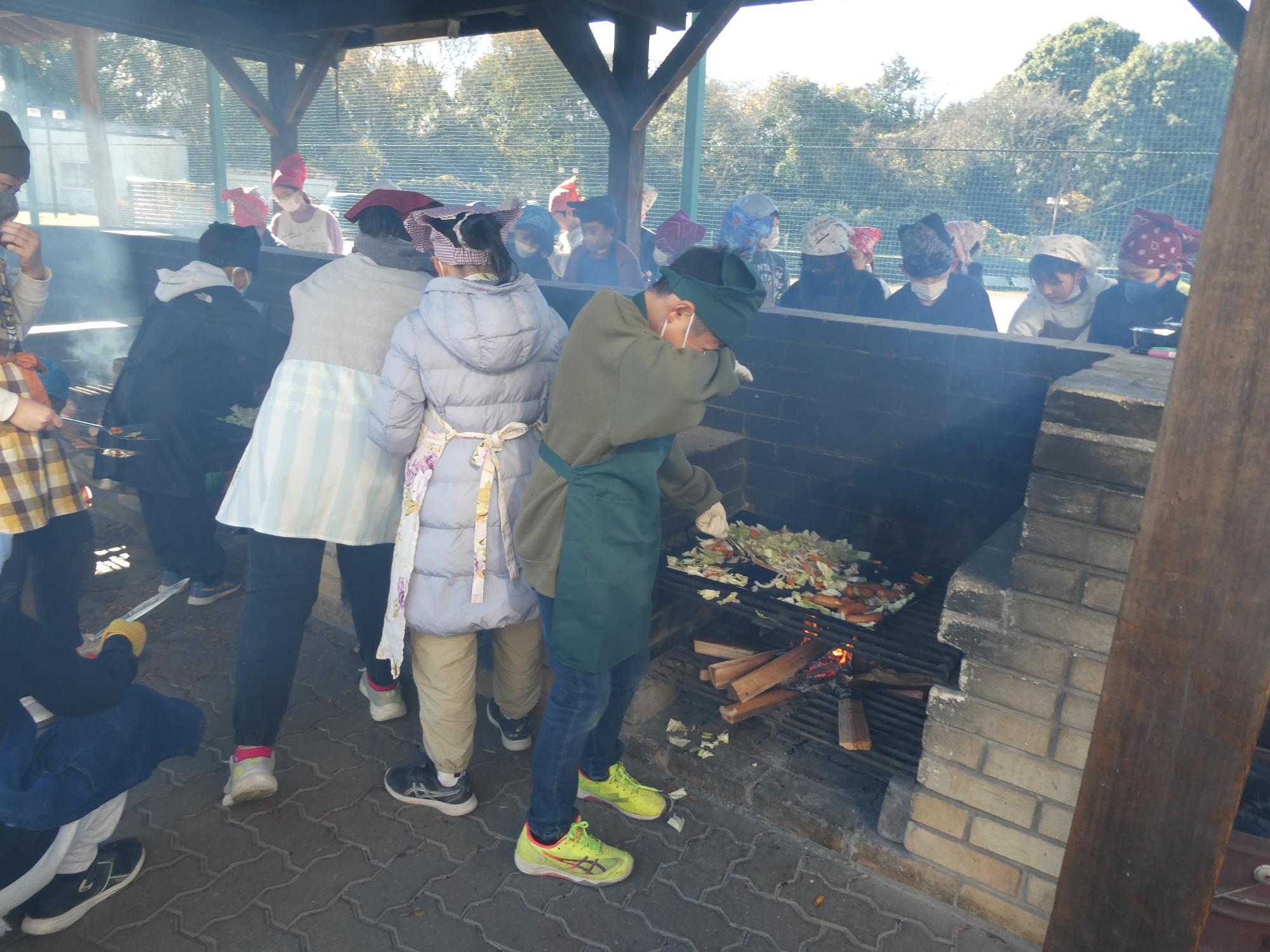 昼食は野外炊飯を行い、みんなで焼きそばとフランクフルトを作りました。煙で目を痛めながらも、一生懸命作った焼きそばは、本当に美味しかったです!みんなよく食べ、最後の片付けも完璧にできました。