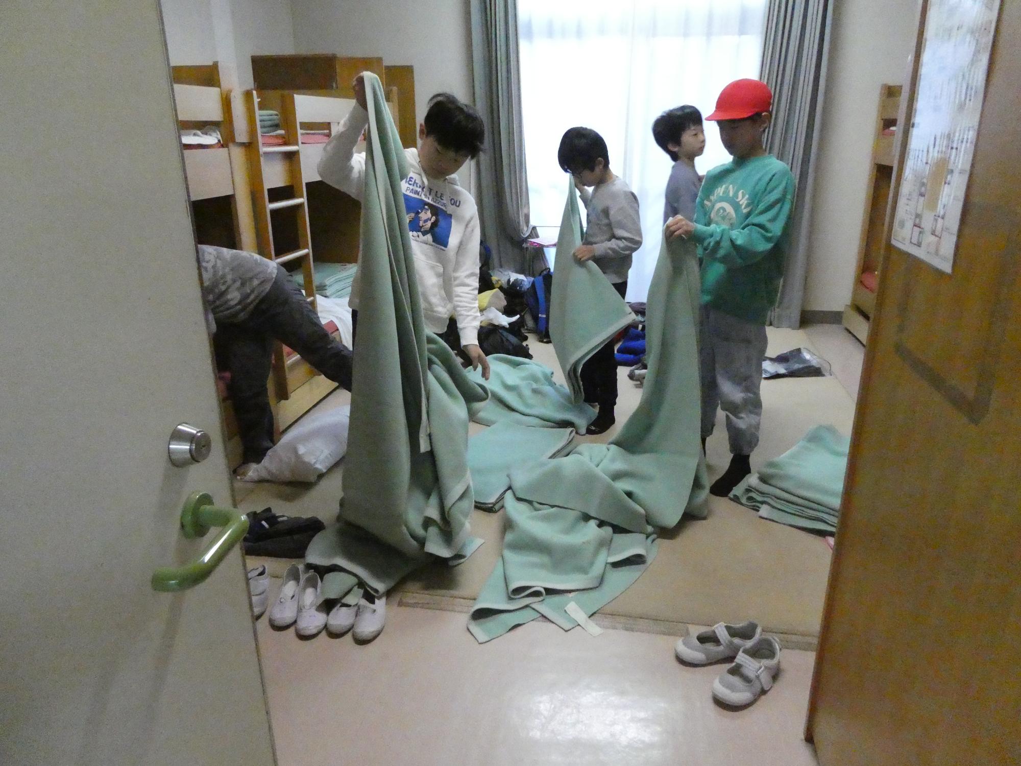 2日目の朝、退所点検に向けてみんなで協力して片付けを行いました。どこの部屋もよく整頓されており、施設の方からは「今年利用された学校の中で、一番きれいです。」と言ってもらえました。