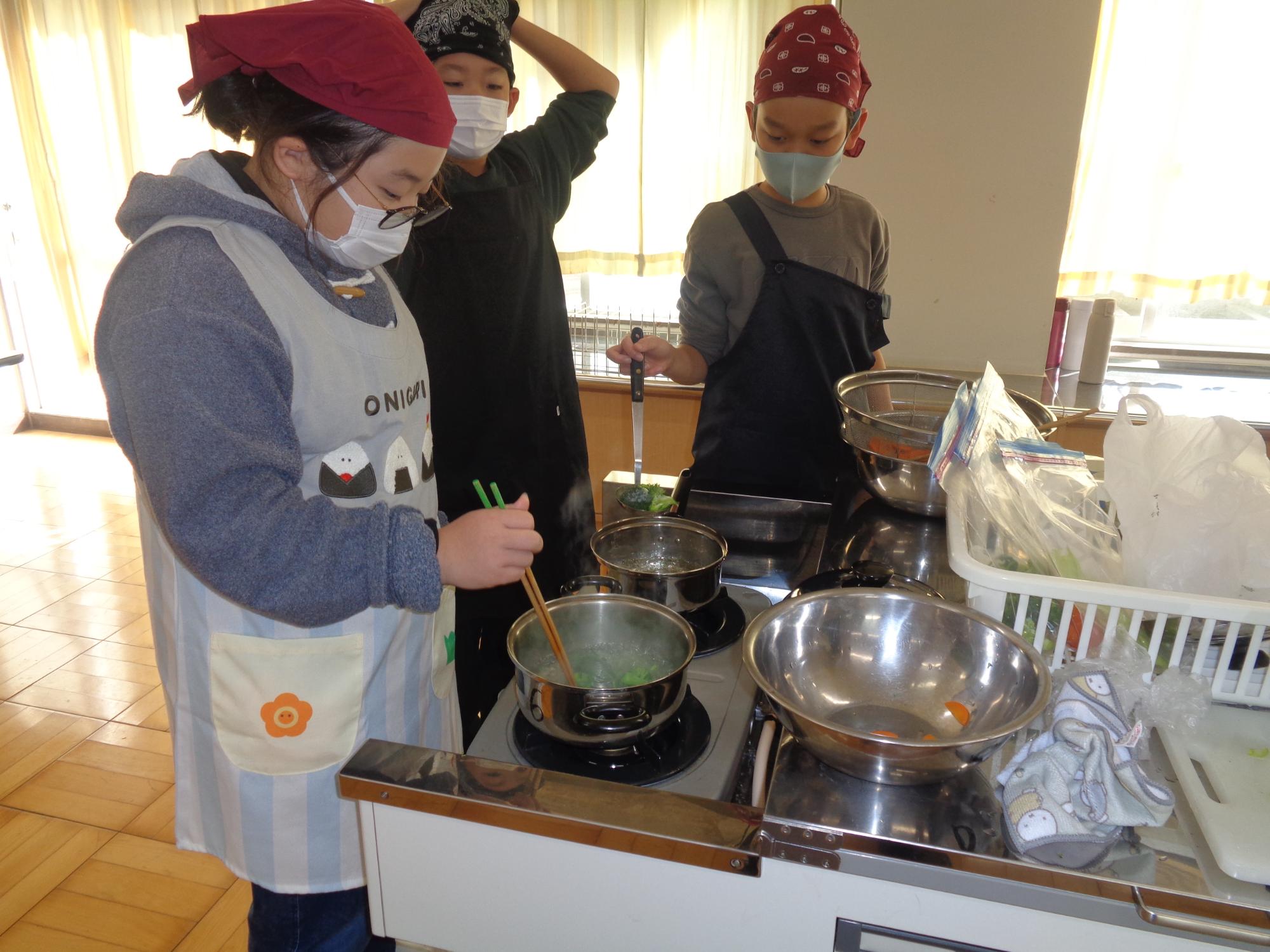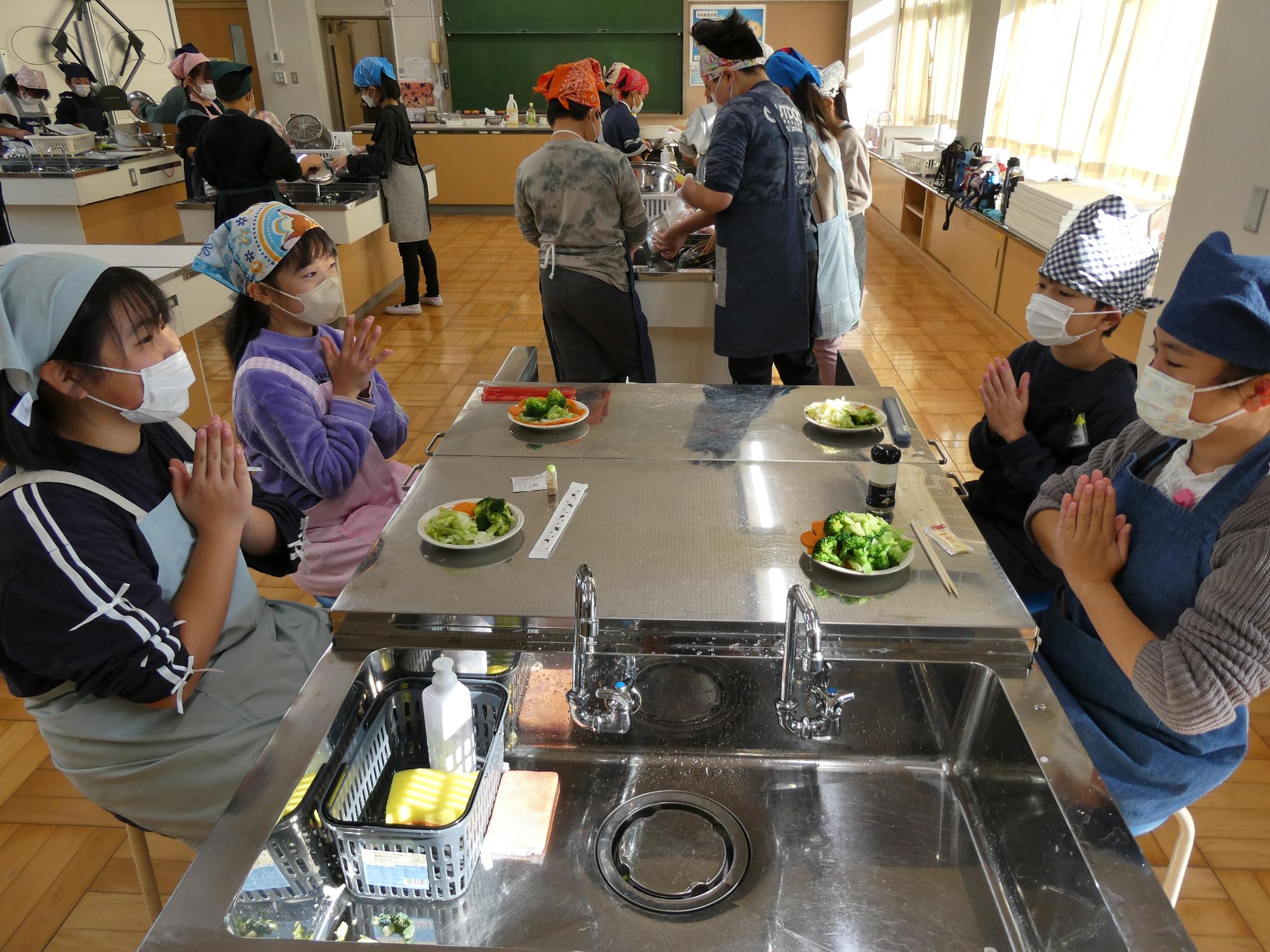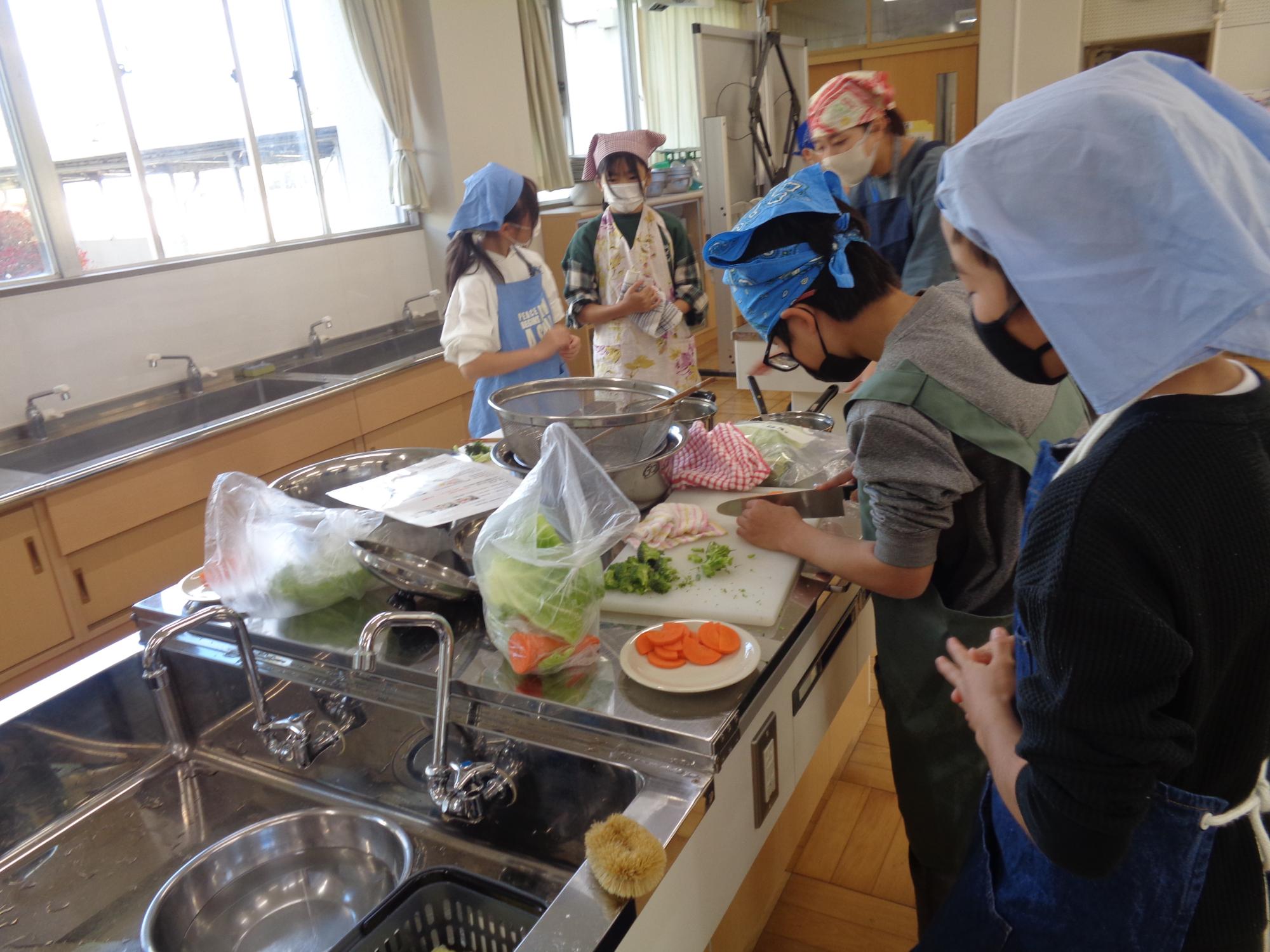 今年度2回目の調理実習が行われました。今回はゆで野菜サラダということで、にんじん、ブロッコリー、キャベツを茹でました。フレンチドレッシングも自分たちで作って食べました。前回同様、自分で調理した美味しさを実感していたようです。また、自然教室でも調理をしてきたことで、手際よくできました。