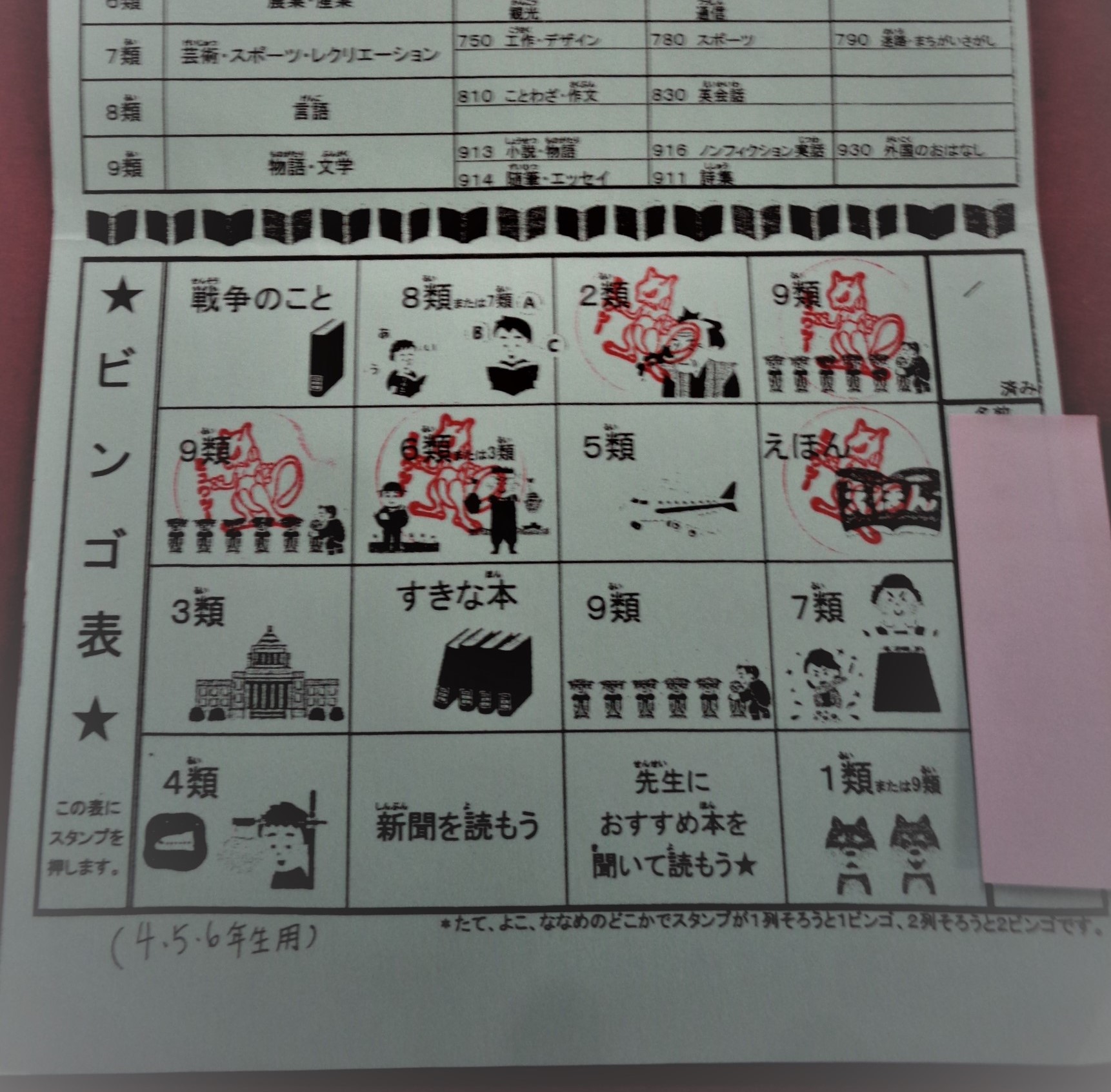 「図書ビンゴ」おはなしぶらんこさんに作って下さったカードを利用しました。