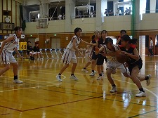 準々決勝が千葉黎明高校体育館にて行われました。対戦相手は佐倉市立佐倉中学校です。お互い激しいディフェンスでロースコアの展開で最終ピリオドまでもつれ、同点のまま3分間の延長戦に突入し、最後は32-38で敗戦でした。お互い力を尽くした激闘でした。ここまで強豪校としてチームを引っ張った3年生、本当にお疲れ様でした。