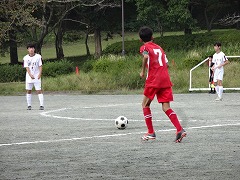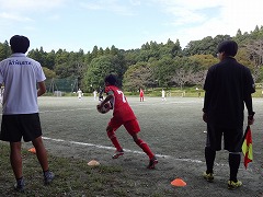 新チームは七次台中、桜台中との合同チームでスタートしました。前日の2回戦を同点からのPK戦で勝ち上がり、3回戦は酒々井運動公園競技場にて、酒々井町立酒々井中学校と対戦しました。前半の立ち上がりに、PKをとり確実に得点しました。その後コーナーキックからの失点で追いつかれ、互角の戦いで1-1のままPK戦に入り、残念ながら敗戦です。各校の連携を深めれば、まだまだ強くなることを感じさせる大会でした。