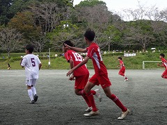 強風の中、ボールコントロ-ルが難しいようで、どちらも決め手を欠く中、相手のコーナーキックが吸い込まれるようにゴールに入り、PKを含めて残念ながら0-2で敗戦です。