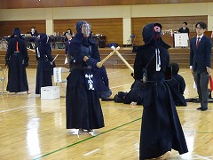 市原市のゼットエー武道場にて行われました。1回戦は館山市立館山中学校。お互い激しく打ち合い、1本を取りつ取られつの大接戦で、2勝2敗1引き分けでしたが、本数が3-2で1回戦を突破しました。