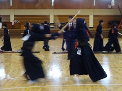最初は素振りから始まり、面を着けて4から5人1組で、切り返し・基本打ち・技の練習・掛かり稽古・地稽古という稽古内容でした。