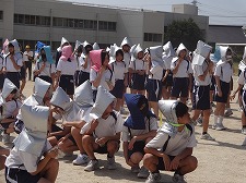 本日は防災の日です。2校時に避難訓練を行いました。想定は通常の授業中での地震からの火災発生で、各教科の授業の場所からの避難です。地震はいつ起きるかわかりませんので、今後も様々な場面設定での避難訓練を計画していきます。