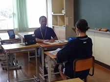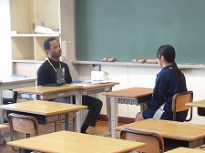 スピーキングテストを一人一人行っています。別教室に待機しているALTのところへ行って、質問、回答のやりとりを英語で行っています。なかなか緊張するようで、とても良い経験です。