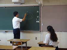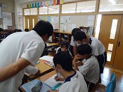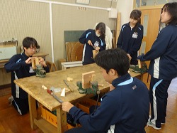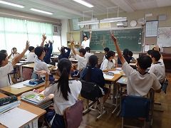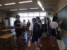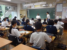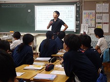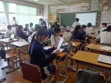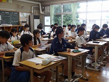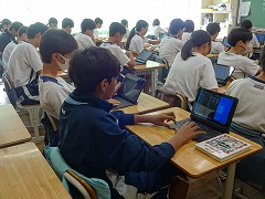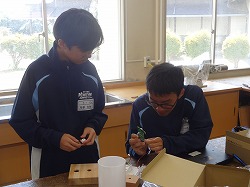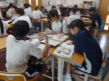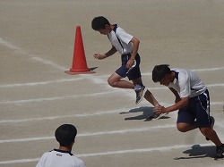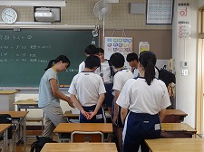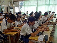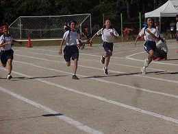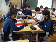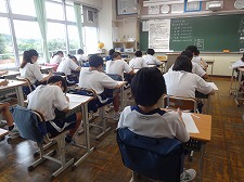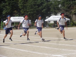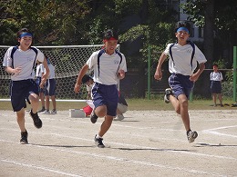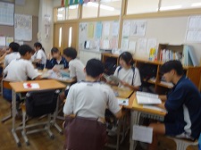 体育祭週間が終わり、今日から通常の授業にもどりました。1年生の社会科は、歴史分野で飛鳥時代のことを級友と協働しながら調べています。2年生の技術科はLEDあんどんの製作です。もう少しで完成します。3年生の保健体育科男子は、体育祭翌日ですがグラウンドで50m走です。みんなとても元気です。
