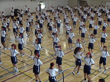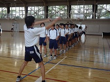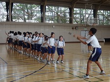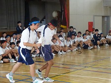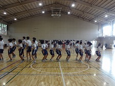 2年生の体育の授業は、体育館で長縄をしていました。体育祭の種目の中に、毎年恒例の学級対抗の長縄があります。クラスの気合いと団結が試されるとても盛り上がる競技です。まだまだうまくできませんが、みんな楽しそうに跳んでいました。