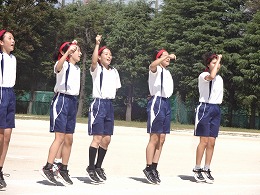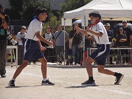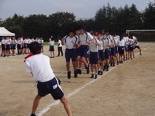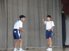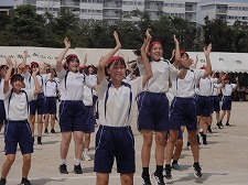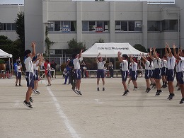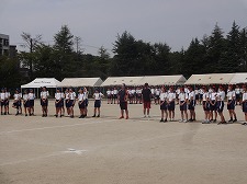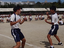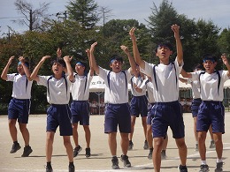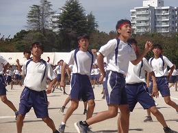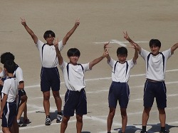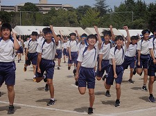明日の体育祭に向けて各学年で練習した後、午前中の最後に応援交換会を行いました。当日は相手の応援を後ろからしか見ることができないため、お互いの応援を見てさらに気持ちを高めるために、体育祭実行委員会が主催して行いました。どちらも気合いの入った応援で甲乙つけがたく、明日の決戦が楽しみです。