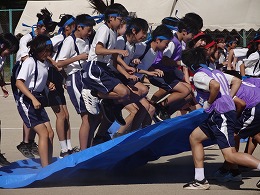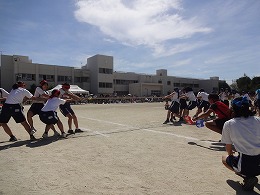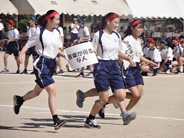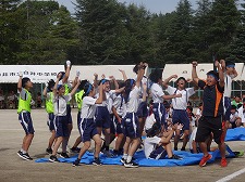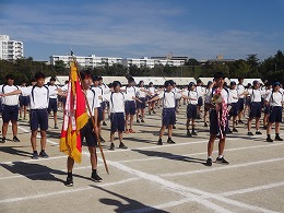 絶好の秋晴れの中、第45回体育祭が開催されました。「紅蒼激突」のスローガンの通り、両組の真剣に力の限りを尽くした競技が続き、最後まで勝敗の分からない白熱の展開でした。特に3年生の綱引き第3回戦は歴史に残る名勝負でした。最後の応援合戦もリーダーを中心に、赤も青も最高のパフォーマンスを発揮しました。勝負ですから結果は出ますが、全員が真剣に、そして全力を尽くした素晴らしい体育祭でした。
