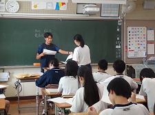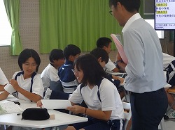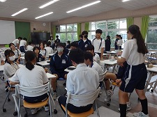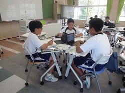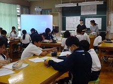 公民の分野で、現代社会の見方や考え方を知る授業を行いました。毎日大混雑の会社の社員食堂をどのような方法で改善していくかという課題で、各グループに分かれて知恵を出し合い、プレゼンを行いました。様々な意見が出てきて、中学生の発想力に驚かされました。