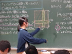 二次方程式の利用に入りました。図形の面積に関する問題を二次方程式を使って解きます。考え方、解き方を協働しながら進めています。