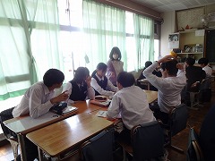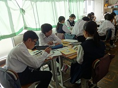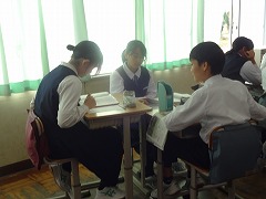 日本の歴史で、平安時代を勉強しています。藤原道長がなぜ極楽往生を強く願ったかを、道長の行ったことをふまえて班で考えました。時代背景を考えて、歴史上の人物の考えを掘り下げています。