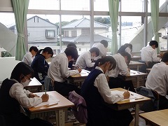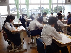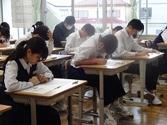 3年生は第4回の実力テストを行いました。この結果は今度の三者面談での大切な資料の一つになります。進路目標達成に向けて、みんな真剣に取り組んでいます。