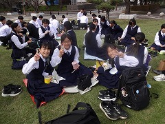 昼食は外の芝生でクラスごと食べました。みんなで食べるお弁当は最高です。