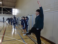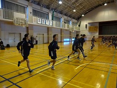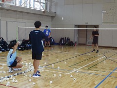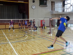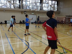 男子バドミントンの体験会が行われました。本校と大山口中のバドミントン部員がメインで、バドミントン部がない中学校からも参加がありました。地域の指導員のもと、一生懸命シャトルを打っています。