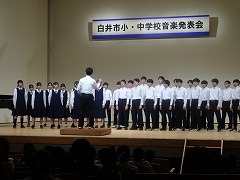 市の文化会館大ホールにて、市内小中学校の合唱、合奏の代表が集まって音楽発表会が開かれました。本校からは合唱コンクールで最優秀賞を受賞した3年B組と吹奏楽部が参加しました。市内の小中学生、保護者が鑑賞する中、緊張感をもちながらしっかりと自分たちの合唱、演奏をやりきりました。また他の学校の素晴らしい合唱や演奏を聴くことができ、とても有意義な時間を持てました。