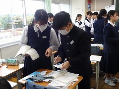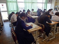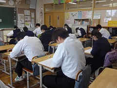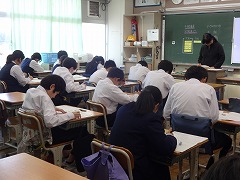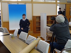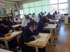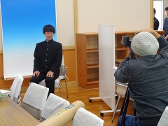 3年生は、午後に卒業アルバムの個人写真を撮影しました。大切な写真なので、髪型等を一生懸命整えている生徒が女子を中心にけっこういました。みんな良い笑顔でポーズです。できあがったアルバムを見るのが楽しみです。
