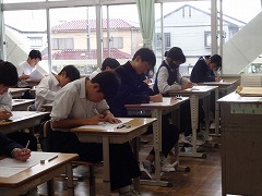 3年生は定期テストで、今日は国語科、社会科、数学科の3科目です。ここまでの勉強の成果をしっかりと発揮してほしいです。