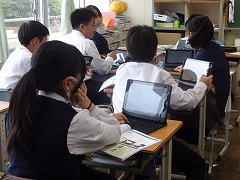太陽系の惑星について、各班でテーマを決めてインターネット等を利用して調べて、発表します。プレゼン資料をタブレットで作成中です。どのような発表になるか楽しみです。