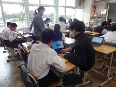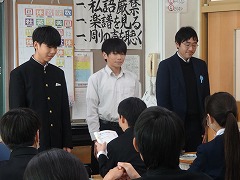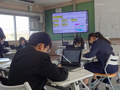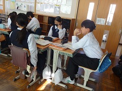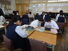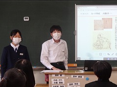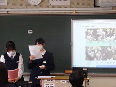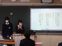 グループごとに和歌を選んで、意味やその時代の背景などを調べました。その発表会です。プレゼン用の資料を作ってクラスみんなの前で発表です。さすが3年生、工夫された画面としっかりとした発表内容でした。