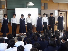 5校時はA棟音楽室で、学年集会を開きました。後期の級長、副級長の紹介をし、各自抱負を述べました。新しいリーダーのもと、より良い学年をつくっていきます。