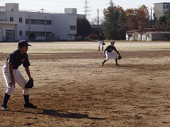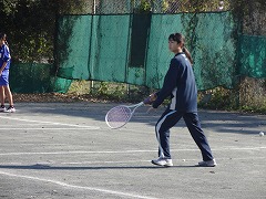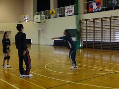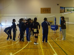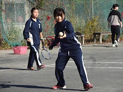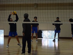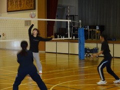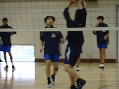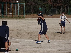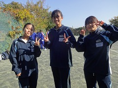 男子は外でソフトボールです。気持ちの良い秋の晴天の中、楽しそうにプレイしています。女子は体育館でバレーボールです。スパイクの打ち方を練習しています。足のステップがポイントのようです。