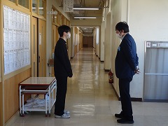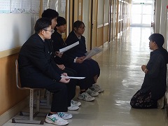 3年生は学年の先生との面接練習です。6会場に分かれて集団面接の練習をしました。始めた頃に比べて、みんな受け答えがしっかりとしてきました。来週は、他学年の先生との面接練習があります。