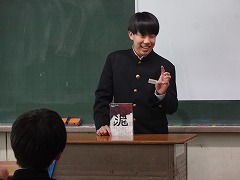ビブリオバトルを開催しました。各班から選ばれた6名による本の紹介です。各自個性のある紹介で、紹介後の質問もとても多かったです。クラスチャンピオンは「ドイツ人のすごい働き方」になりました。