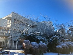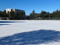 あけましておめでとうございます。今年もよろしくお願いいたします。新年に入って、初雪が降りました。学校の表はあまり変わりませんが、グラウンドに出ると見事な雪景色です。
