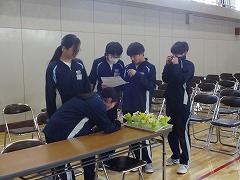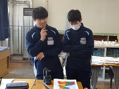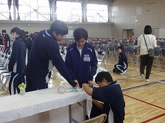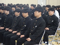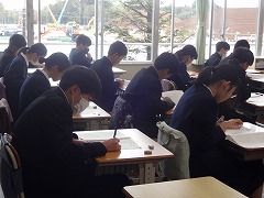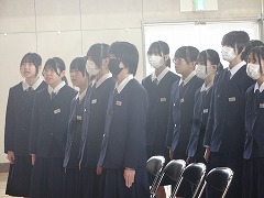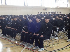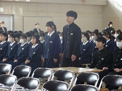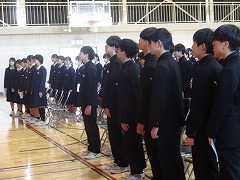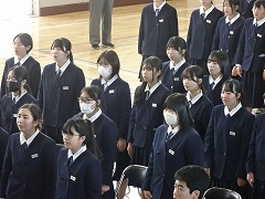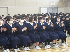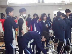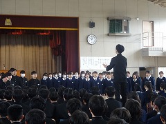3年生が公立高校の発表でいないため、1,2年生での合同練習です。動きの確認と、合唱練習をしました。動きは少しの練習でバッチリでした。合唱も3年生に負けないように頑張りました。