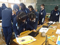 テクスチャーアート(絵に粘土等を使って立体表現も加えたアート)の発表会です。各自の作品を見て回り、感想を書きます。個性のある作品揃いでとても楽しいです。