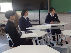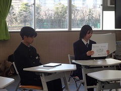 生徒会本部役員が、学校生活をより良くするために学校や学級に必要な物を全校生徒にアンケートを取り、取りまとめて検討した結果をPTA役員の方々にプレゼンテーションを行いました。実際にネットで調べたり、お店に行ったりしてとても完成度の高いプレゼンでした。