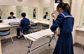 1/10・11に吹奏楽は千葉県吹奏楽個人コンクール印旛地区予選が行われ、4名の個人が参加しました。それぞれに得意な楽器で、たくさんの観衆の前でソロ演奏を立派に行いました。七中からは、3月に行われる県大会出場のキップを手にした生徒も出ました。(※本番会場では写真撮影ができないため準備室での様子をお伝えします。)