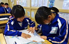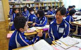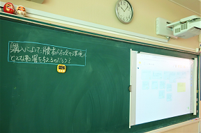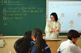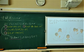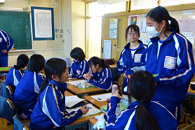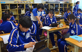 授業では道徳の本の中の「いじめ」を題材にした内容を読み、自分の考えや思いを意見として出し合っています。いつもと違う雰囲気での活動は、授業の質を高めているように思えます。また、道徳の授業を通して、隣のクラスの先生が身近に感じらるようになってきたようです。