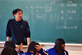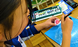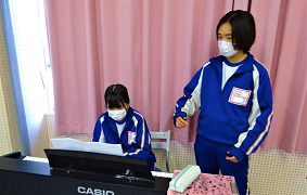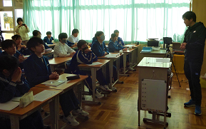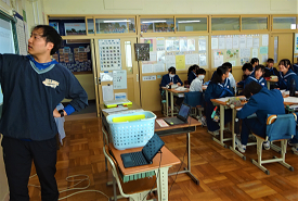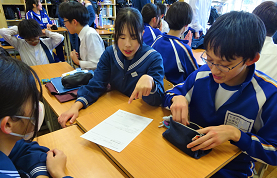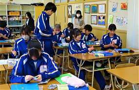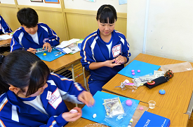 一方、1・2年生は授業を実施しています。あるクラスの理科の授業では、光の屈折による現象の実験をしていました。水がなみなみと入ったお椀の中のものはどのように見えるのか?なぜそう見えるのか?その現象からわかることは何か?を実験を通して学習していました。