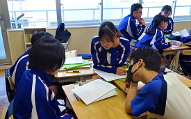 1/13の総合の時間に1年生は「10年後の私」を想像して作成し、互いに発表し合いました。2年生は進路選択の中で、進学する場合の近隣の「高校調査」の活動を行いました。3年生は私立・公立高校の受験日の「当日の計画」づくりを実施しました。どの学年にとっても貴重な一時間になったようです。