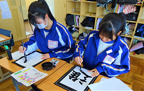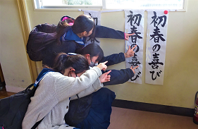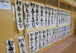 先日に体育館にて書初めの授業を実施し、それぞれの生徒が作品を提出し、各クラスの廊下の壁に掲示されました。個性豊かな作品を見ることが出来ます。また、その中から第三部会小・中学校書き初め展に出展され、見事、特選と準特選に入賞した生徒が4名出ました。1月23日(金曜日)~1月28日(水曜日)の間、イオンモール千葉ニュータウンの3階イオンホールに展示されることになっています。おめでとうございます。