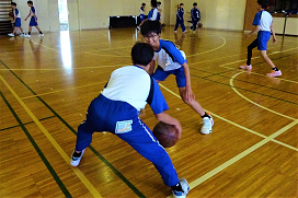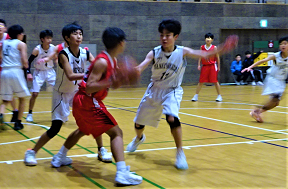 【男子バスケット】攻守ともにそつない力を持つ西志津中との対戦では、七中は前半に攻撃の糸口がなかなか掴みきれず、じわじわと点差が開き万事休すかと思われましたが、後半になってボールキープの場面が増え奮闘しました。結果は善戦惜敗となりました。