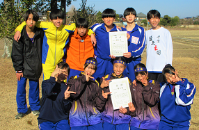 【陸上競技部男女】第9回印西近隣中学校新人駅伝大会では、男子14校24チーム、女子10校18チームが参加し、七中は男女ともに6位に入賞しました。男子は陸上部に長距離の選手がいないので短距離からの有志者と校内からの有志者で参加しました。女子は長距離の選手2名が1区とアンカーで占め、間の区間は短距離の有志者で臨みました。男女とも自分の力を精一杯発揮する走りができ、見事に入賞を果たしました。おめでとう!